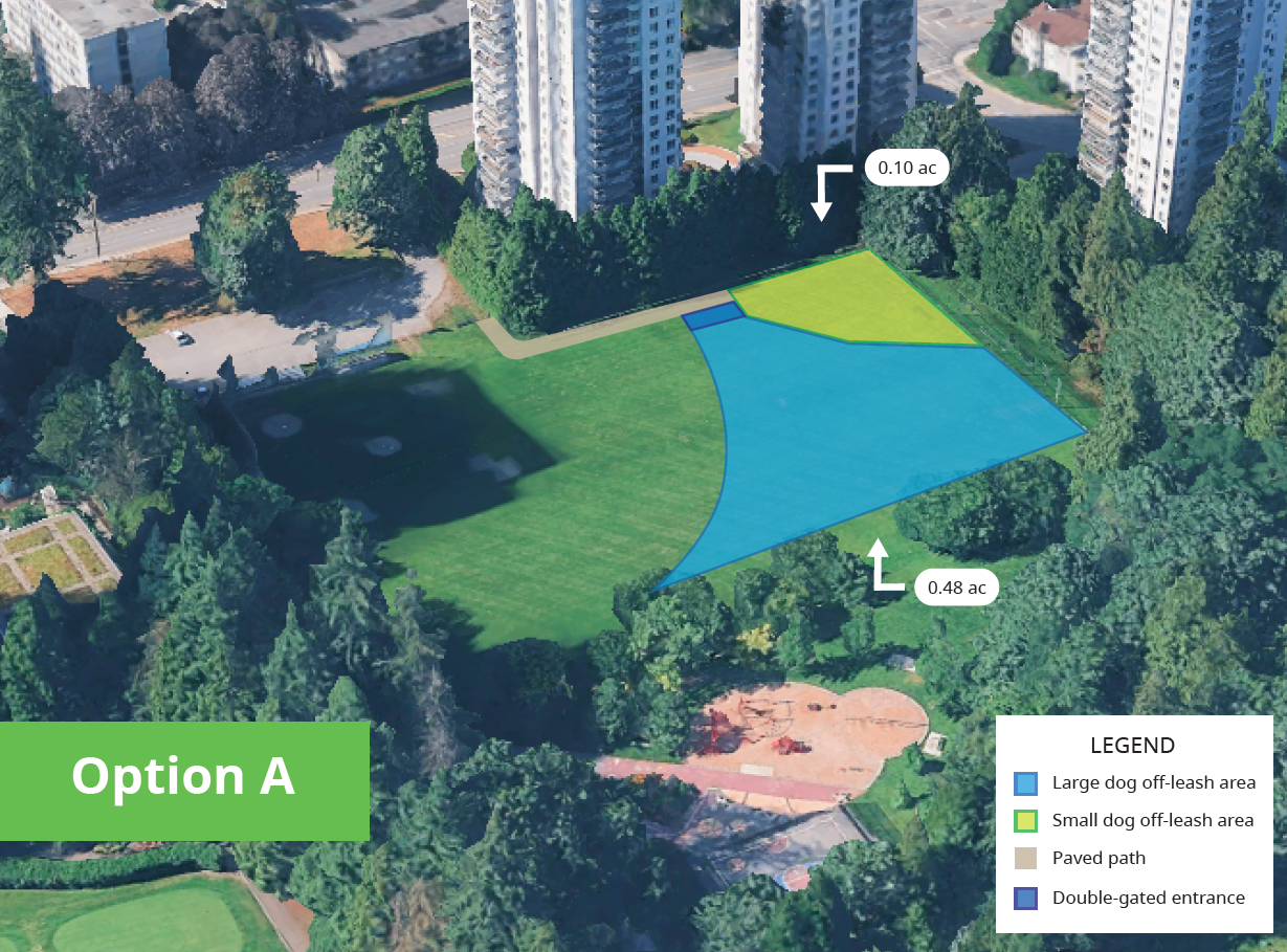 Coquitlam is responding to community needs for a new off-leash dog park in Southwest Coquitlam. Brookmere Park has been identified as the preferred location due to its size, accessibility and compatibility with surrounding uses. Two layout options have been developed for feedback before finalizing the design.
