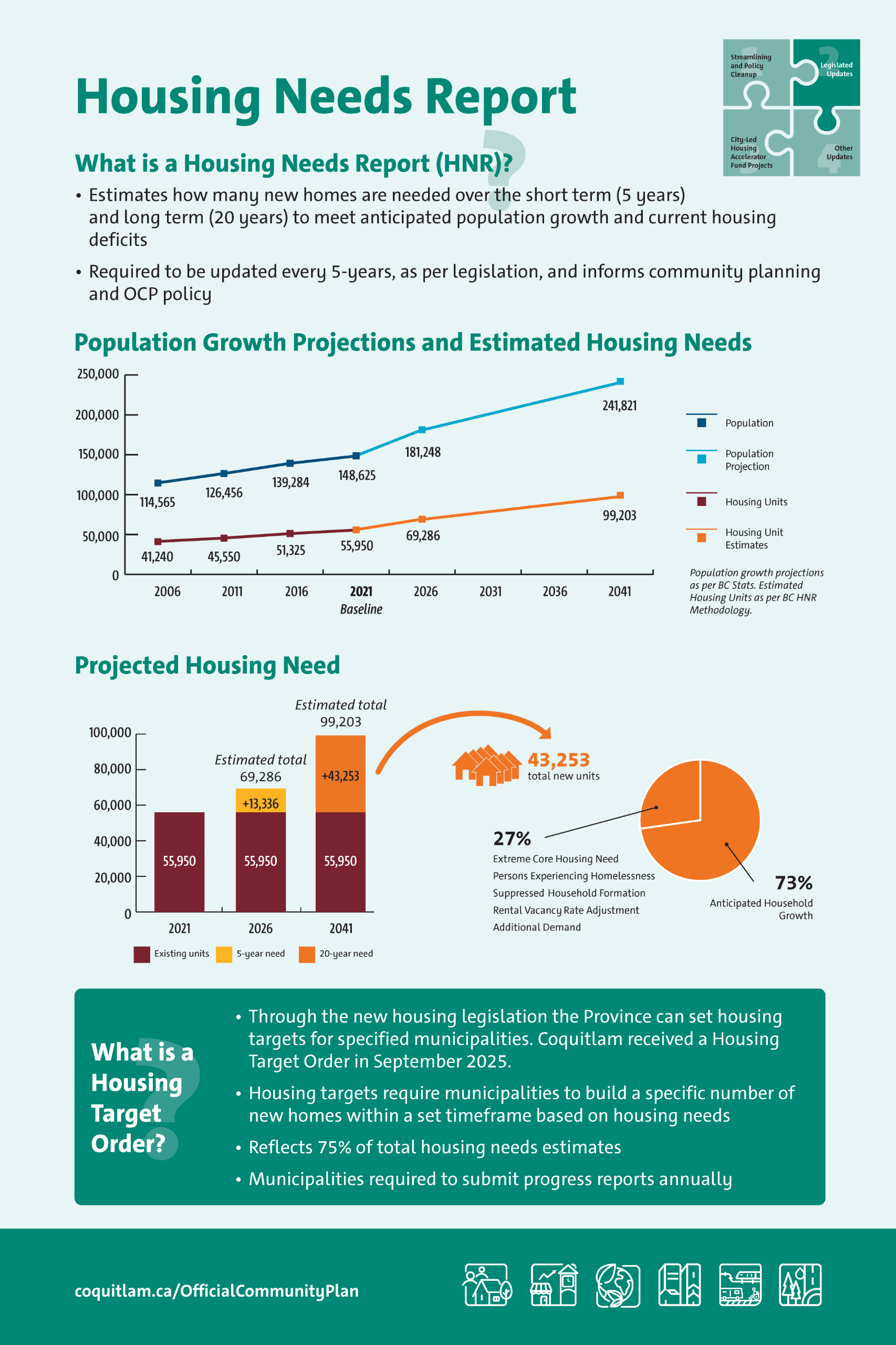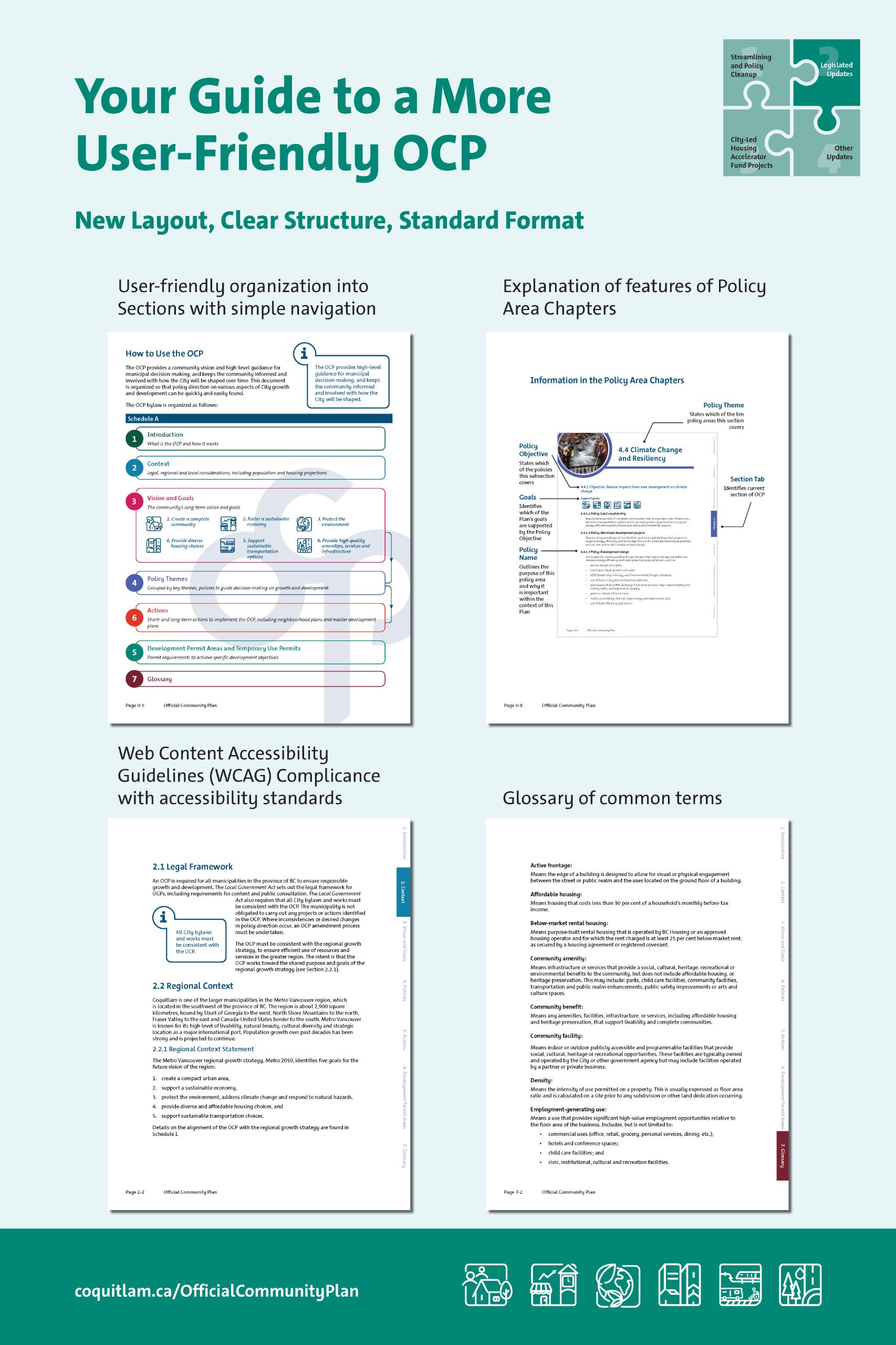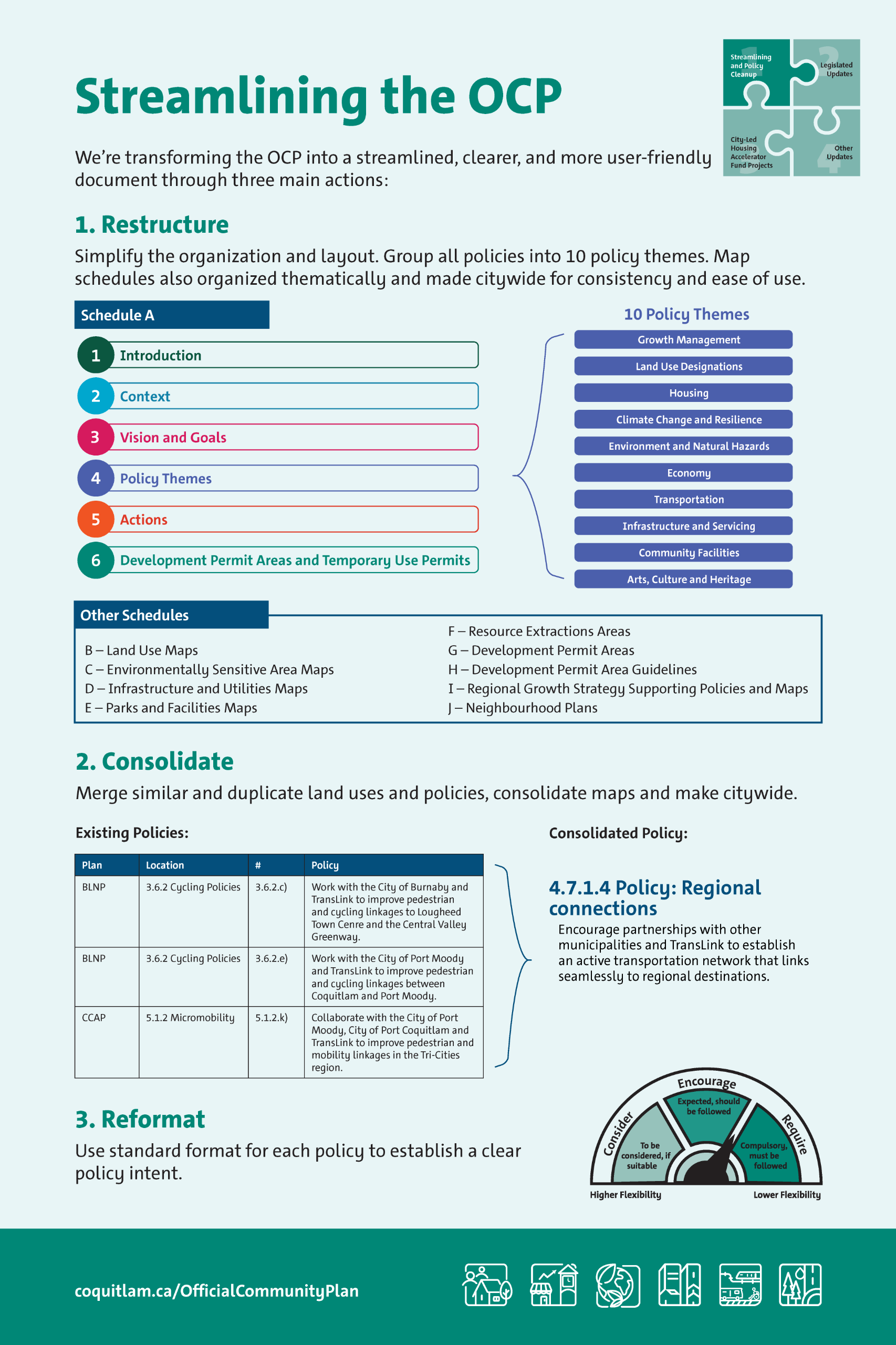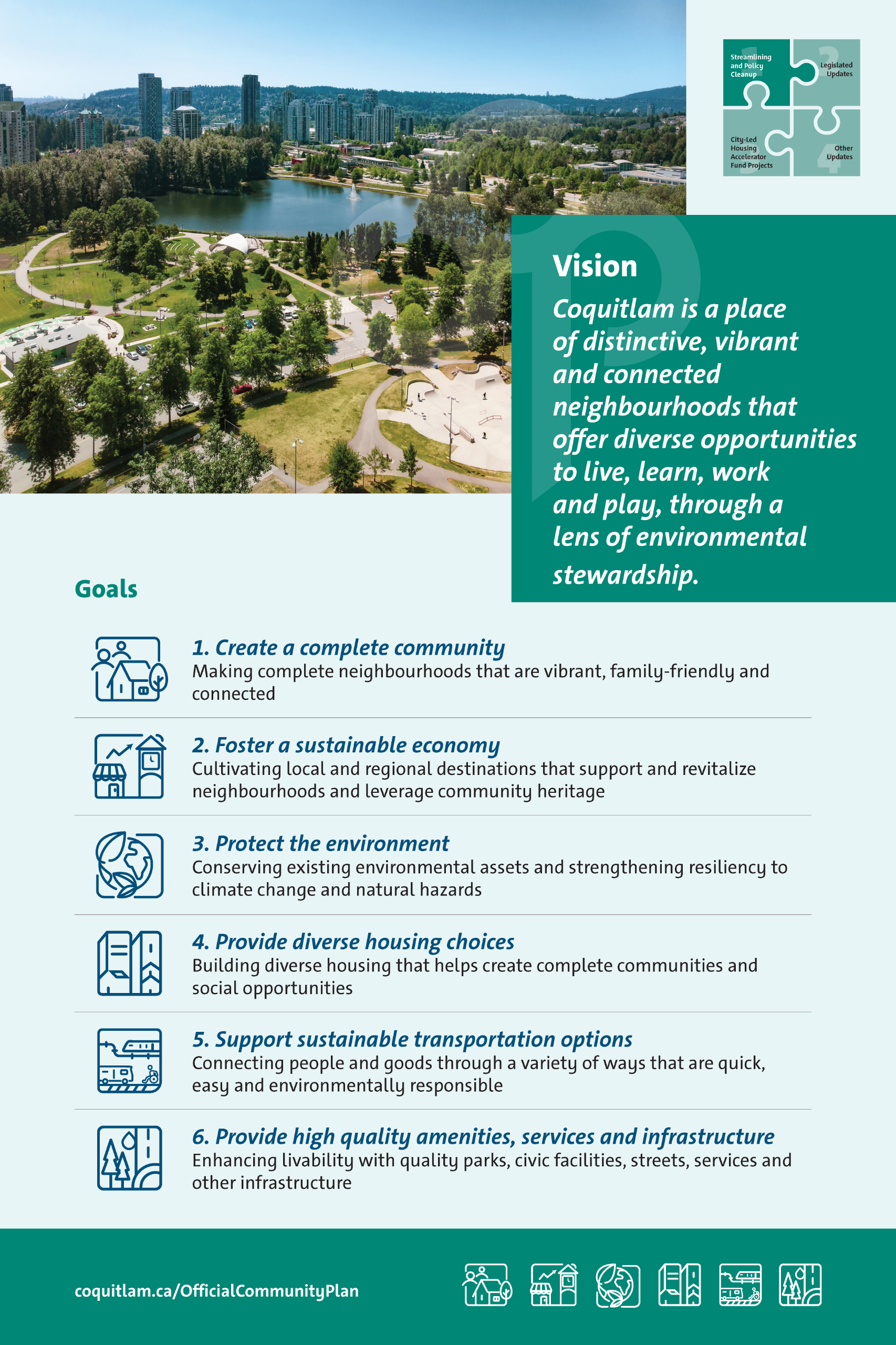 The City of Coquitlam is streamlining its Official Community Plan (OCP) to make it easier to understand, easier to use and better aligned with new Provincial Housing Changes. Under new provincial legislation, the City is now required to review the OCP every five years. Coquitlam’s next review is anticipated to begin in 2027, with completion targeted for 2030.