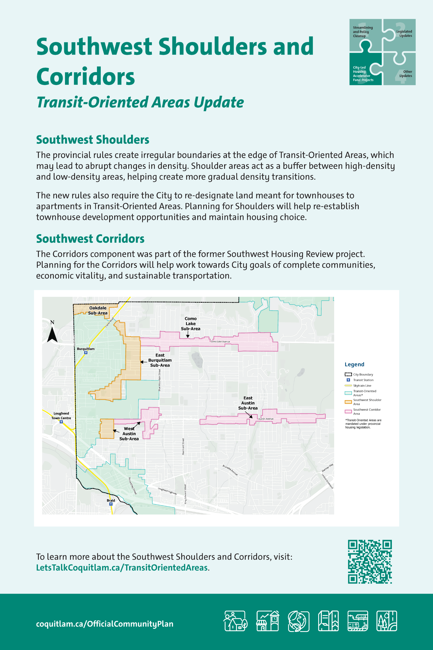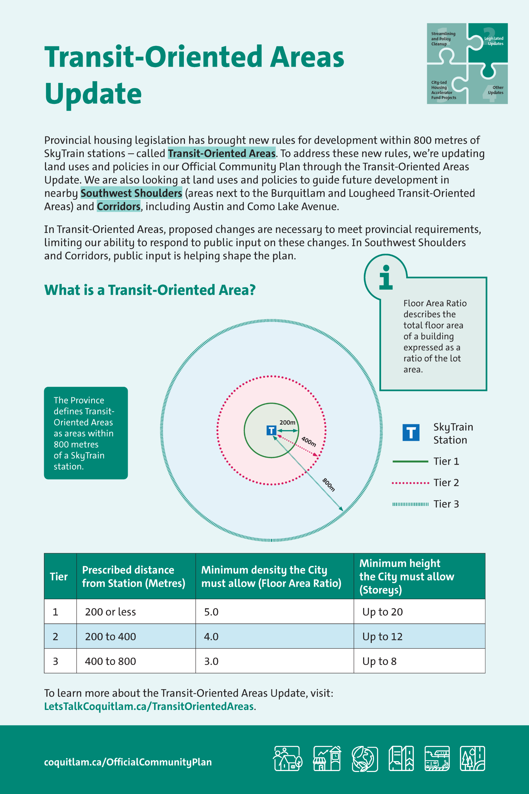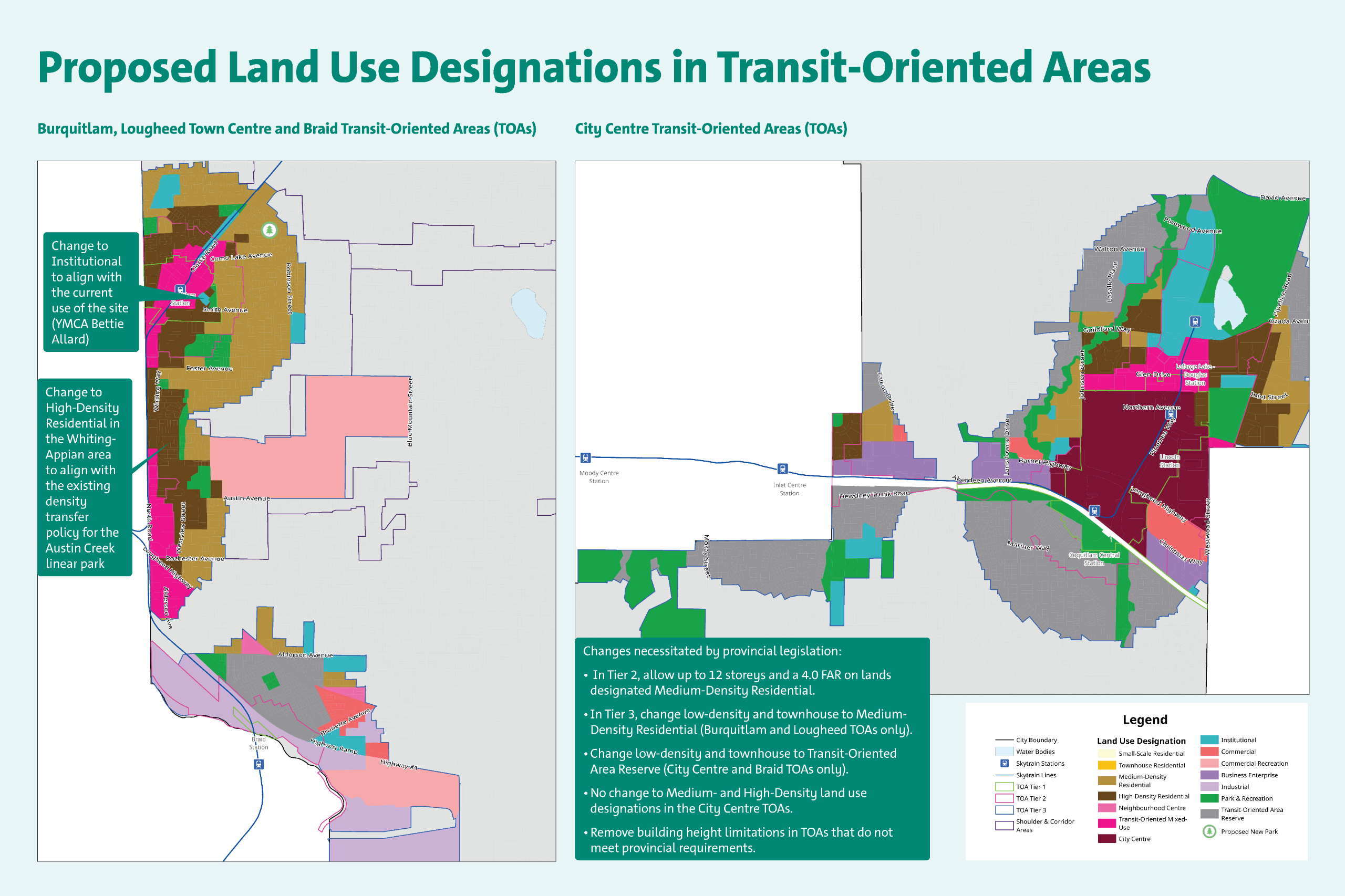 - Incorporate policies and land-use maps changes required by new provincial housing changes (such as Transit-Oriented Areas, Small-Scale Multi-Unit Housing, and the Housing Needs Report).