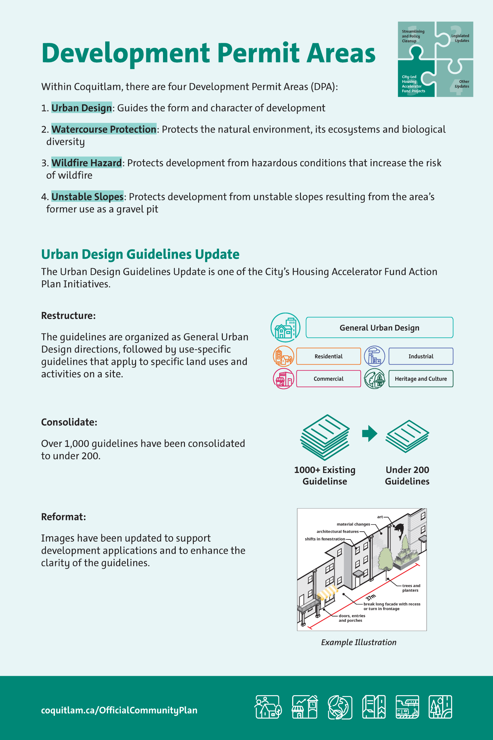 Canada Mortgage and Housing Corporation (CMHC) introduced the Housing Accelerator Fund (HAF) program in 2023, a $4-billion funding initiative for local governments to streamline planning regulations and boost housing supply. One of the City’s Housing Accelerator Fund initiatives is to update the OCP’s Urban Design Guidelines. The outcome will foster smoother application processes, shorter review timelines, and faster housing construction.