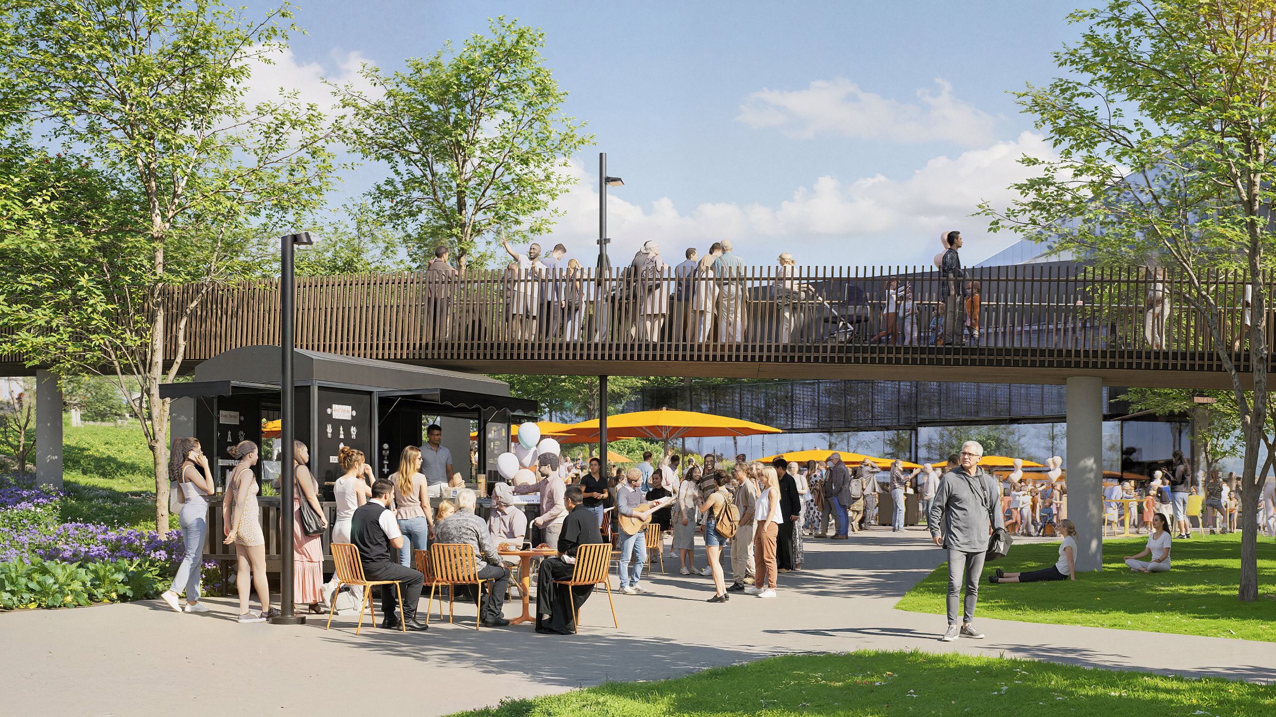 - An elevated, accessible pathway bringing visitors into the mountainside park